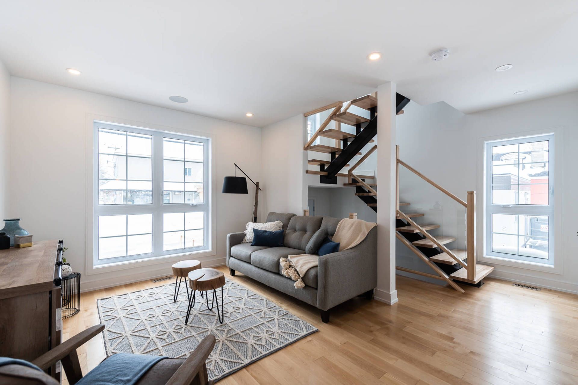 townhouses, in a peaceful setting, close to many activities, shops and restaurants, while enjoying quick access to the city center. Each of the homes in this project has a garage and a carefully landscaped outdoor terrace to maximize your comfort. The hardwood floors and superior quality materials used in the construction add a luxury-style look to your home.